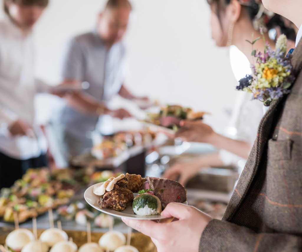 美しく、美味しそうなケータリングを前に、