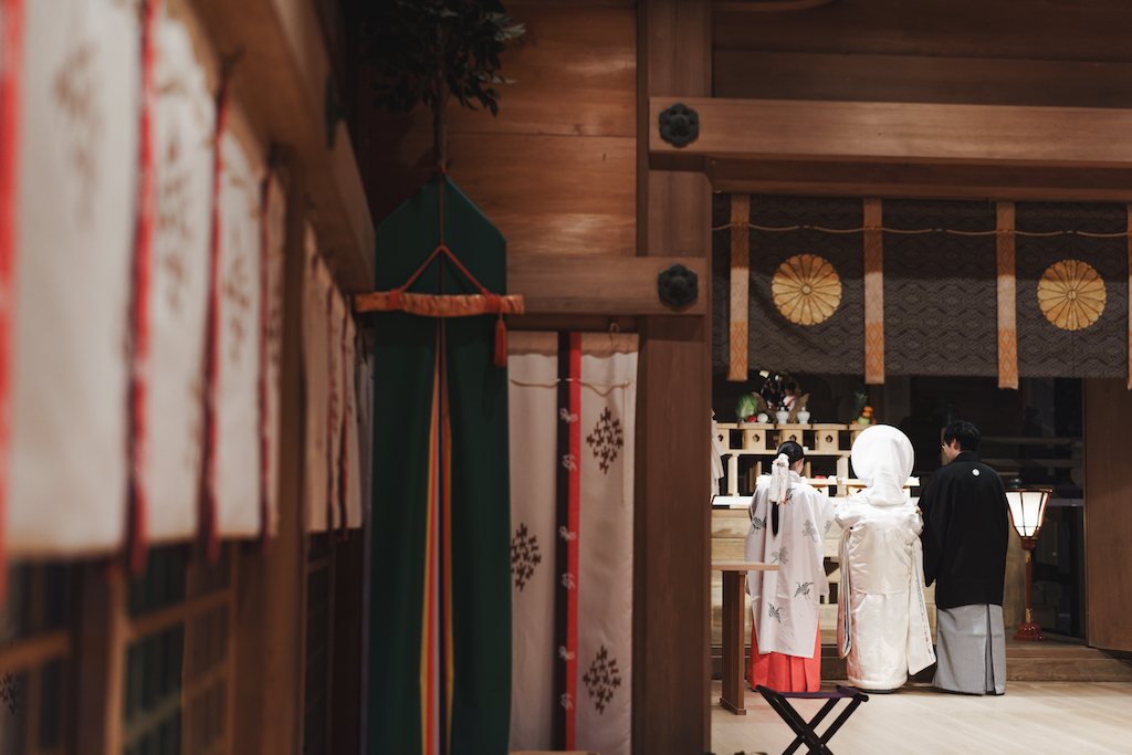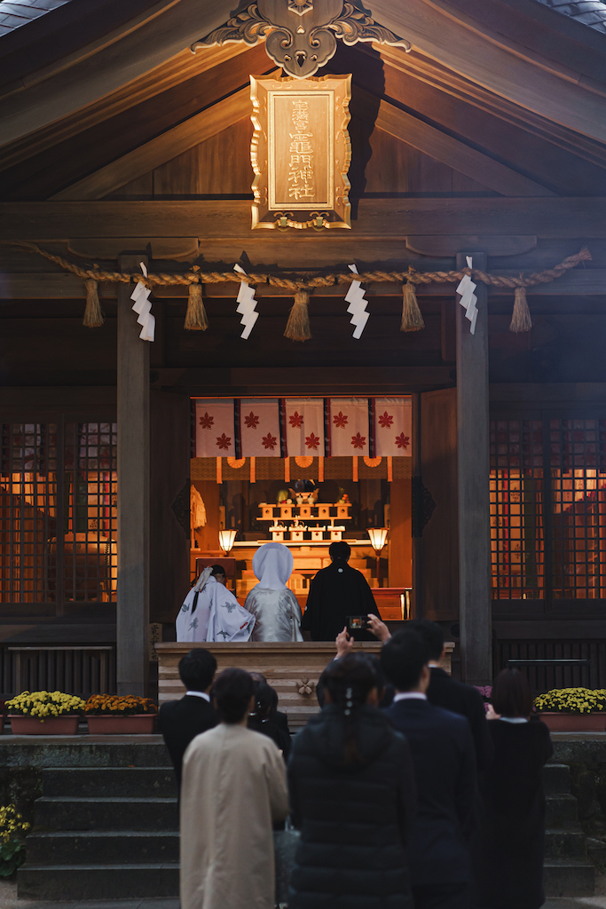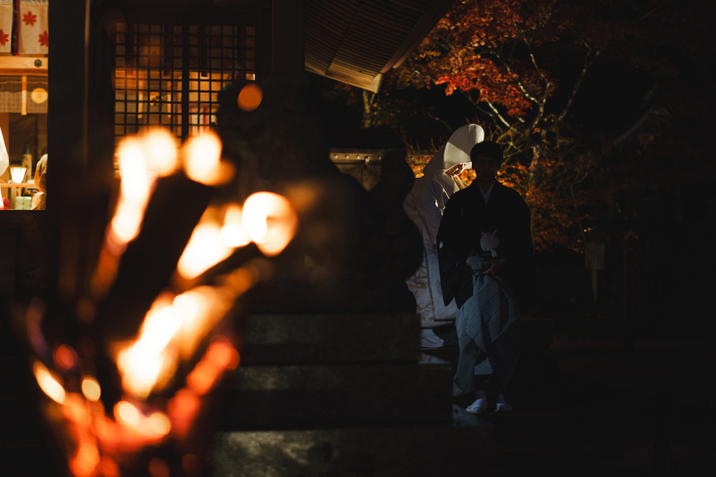幻想的な夜の神前式 竈門神社の「神灯り挙式」